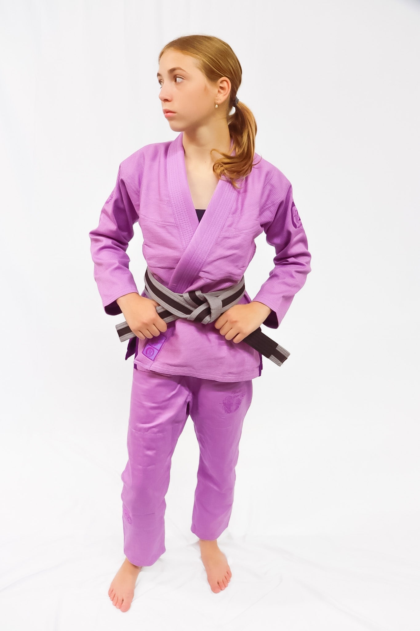 Our Pastel Collection Jiu Jitsu Gi in Grape combines vibrant aesthetics with functional performance for young martial artists. Crafted with a carefully curated pastel palette, this gi features intricate embroidered details throughout the jacket and pants, elevating the visual appeal while maintaining durability. The grape colorway offers a fresh, distinctive look on the mat. Designed specifically for children, this gi provides the comfort and mobility needed for training while the thoughtful embroidery adds personality and style. Perfect for young practitioners who want to express themselves while developing their skills in Jiu Jitsu.